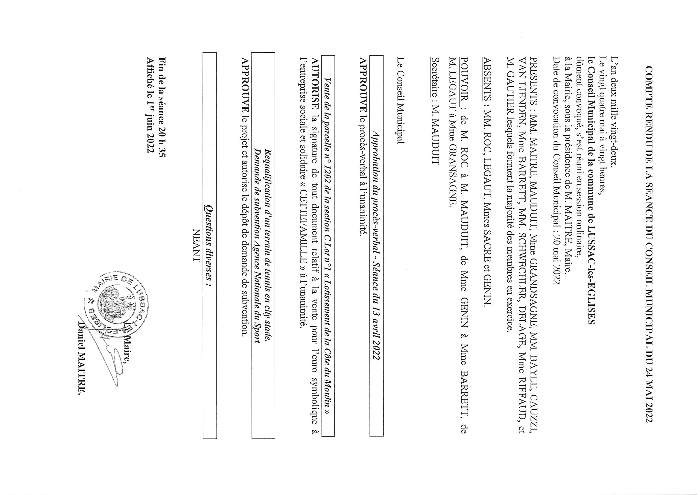 COMPTE RENDU de la séance du 24/05/22